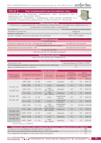Page 75 - Реле и переключатели - номенклатурный каталог